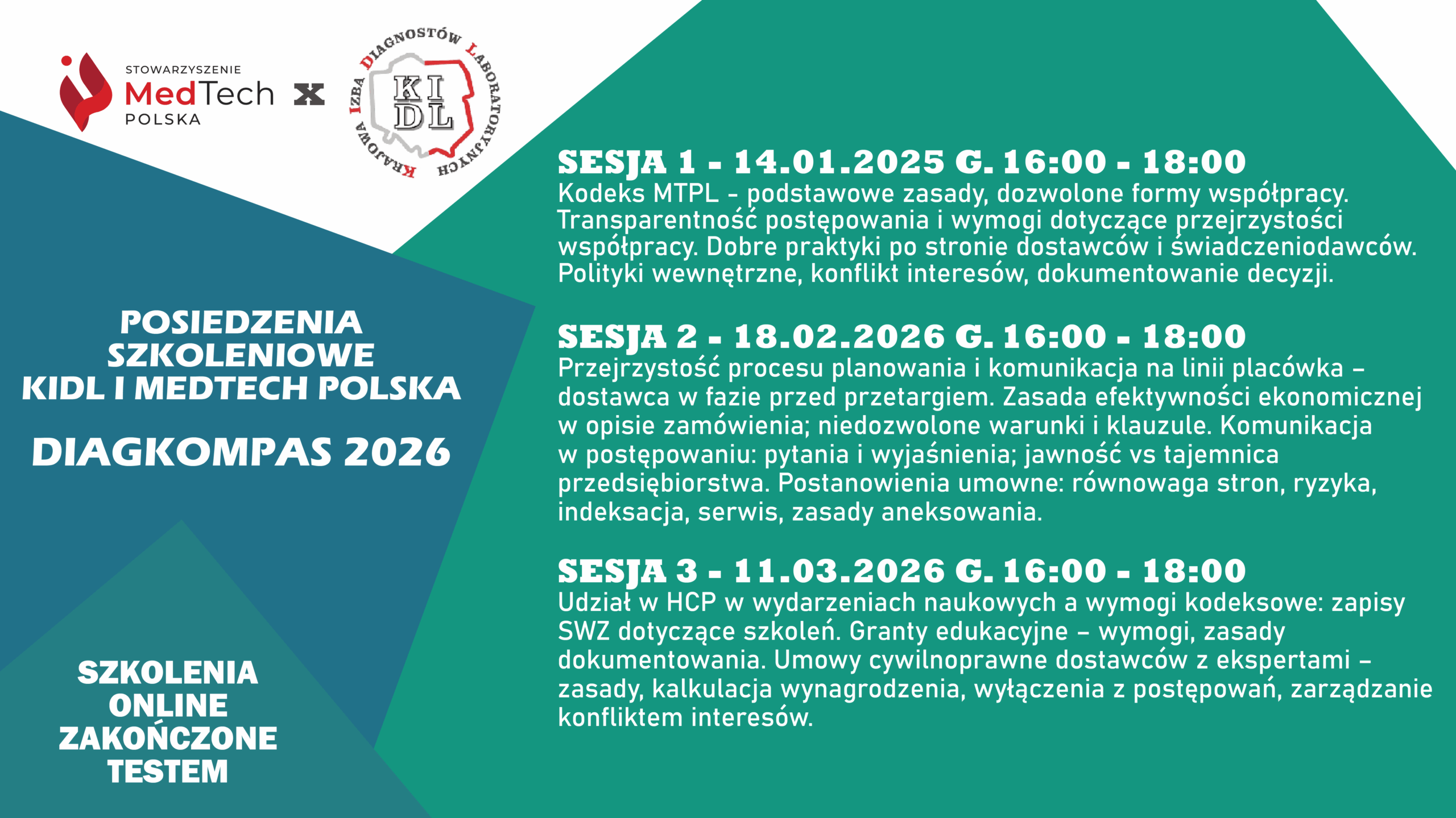 Z przyjemnością zapraszamy do udziału w kolejnej edycji DIAGKOMPAS – cyklu szkoleń realizowanych wspólnie przez MedTech Polska oraz Krajowa Izba Diagnostów Laboratoryjnych KIDL.